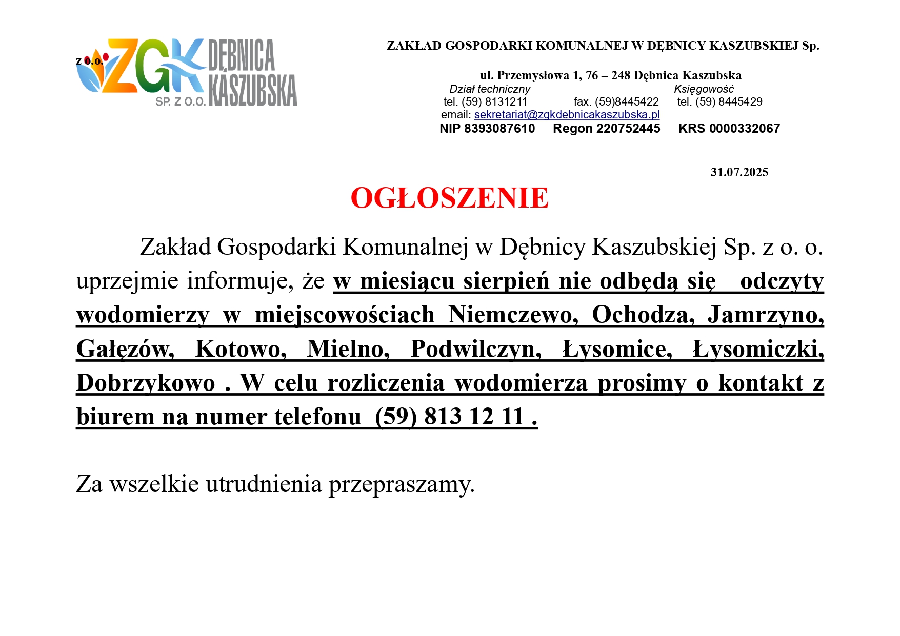 Założycielem Spółki z o.o. Zakład Gospodarki Komunalnej w Dębnicy Kaszubskiej jest Gmina Dębnica Kaszubska.
