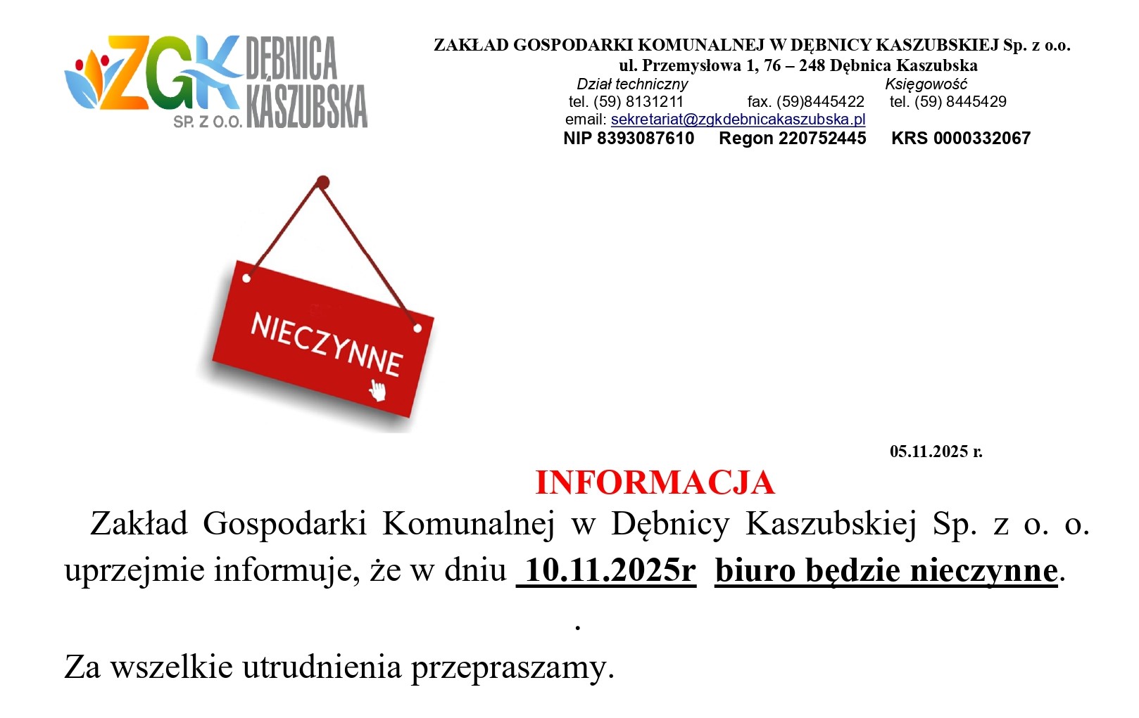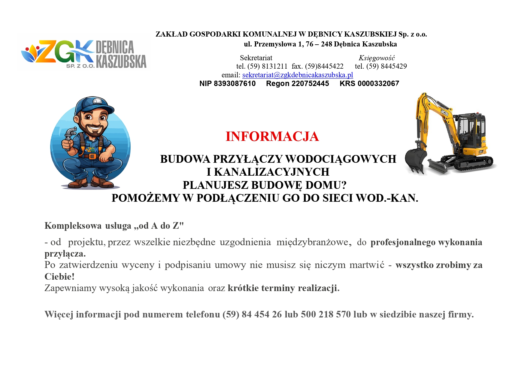 2 marca 2009 roku nastąpiło podpisanie aktu przekształcenia zakładu budżetowego Zakład Gospodarki Komunalnej w Dębnicy Kaszubskiej w spółkę z ograniczoną odpowiedzialnością. Przekształcenie nastąpiło na podstawie Uchwały Rady Gminy Dębnica Kaszubska numer XVI/92/2008 z dnia 14 marca 2008 roku oraz uchwały Rady Gminy Dębnica Kaszubska numer XXW151/2009 z dnia 2 lutego 2009 roku.
